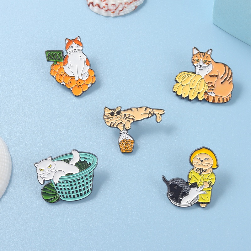Aksesoris Fashion > Aksesoris Tambahan > Bros & Pin > 5 Styles of Cartoon Cat Enamel Brooch Animal Fruit Lapel Pin Backpack Badge Collection Clothing Accessories Gifts for Friends