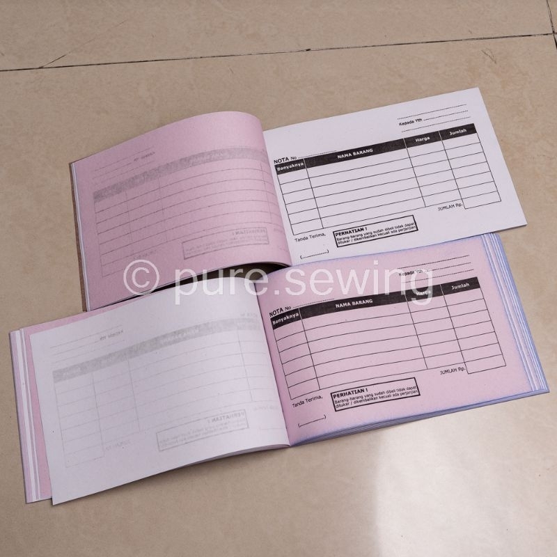 ada 4 variasi Nota Mini 1 ply (50 lembar) Nota Tidur 2 ply (25 x2 lembar) Nota Berdiri 1 ply (50 lembar) Nota Berdiri 2 ply (25x2 lembar)