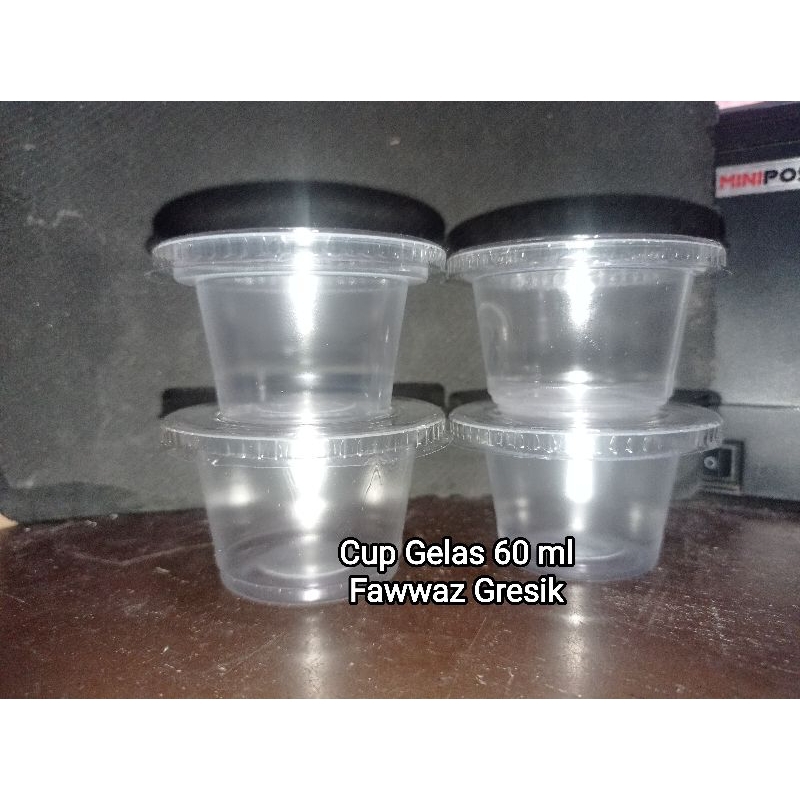 Perlengkapan Rumah > Peralatan Makan > Cangkir, Mug, & Gelas > (50 pcs) Gelas Cup puding 60ml + tutup / Gelas Cup Jelly Agar agar Es Krim Cream Saos Sauce Container 60 ml + tutup Murah