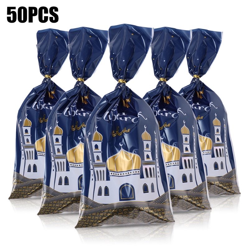 Detail 50 Pcs Kreatif Eid Mubarak Hadiah Tas Muslim Castle Bulan Bintang Permen Cookie Bag Ramadan Kareem Dekorasi Perlengkapan Pesta Islami