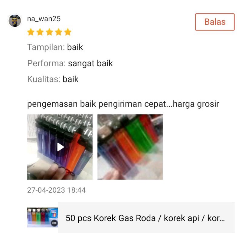 Video perkenalan produk (50 pcs)Korek Gas Roda Pemantik Api Bensin Kotak Murah Grosir/Korek Saku. Sumber: Shopee.