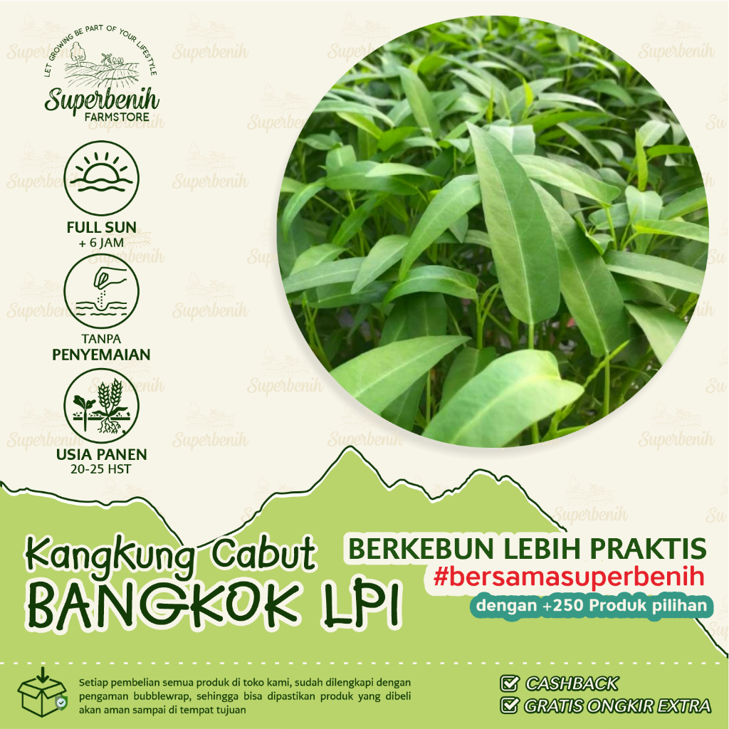 Benih kangkung ini dapat ditanam pada semua lingkungan, baik dataran rendah maupun dataran tinggi. Bobot panen per m2 bisa menghasilkan 2-2,5 kg . Dapat dipanen pada usia 25 hari setelah tanam dengan perawatan yang sangat mudah.