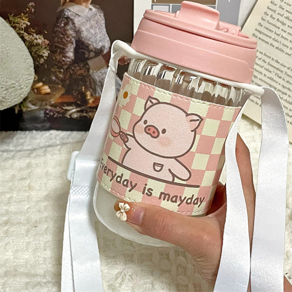 Perlengkapan Rumah > Peralatan Makan > Cangkir, Mug, & Gelas > 500ml Ins Style Double Head Water Cup Dengan Sedotan Botol Air Portabel Berharga Tinggi Untuk Perempuan Dan Anak-Anak