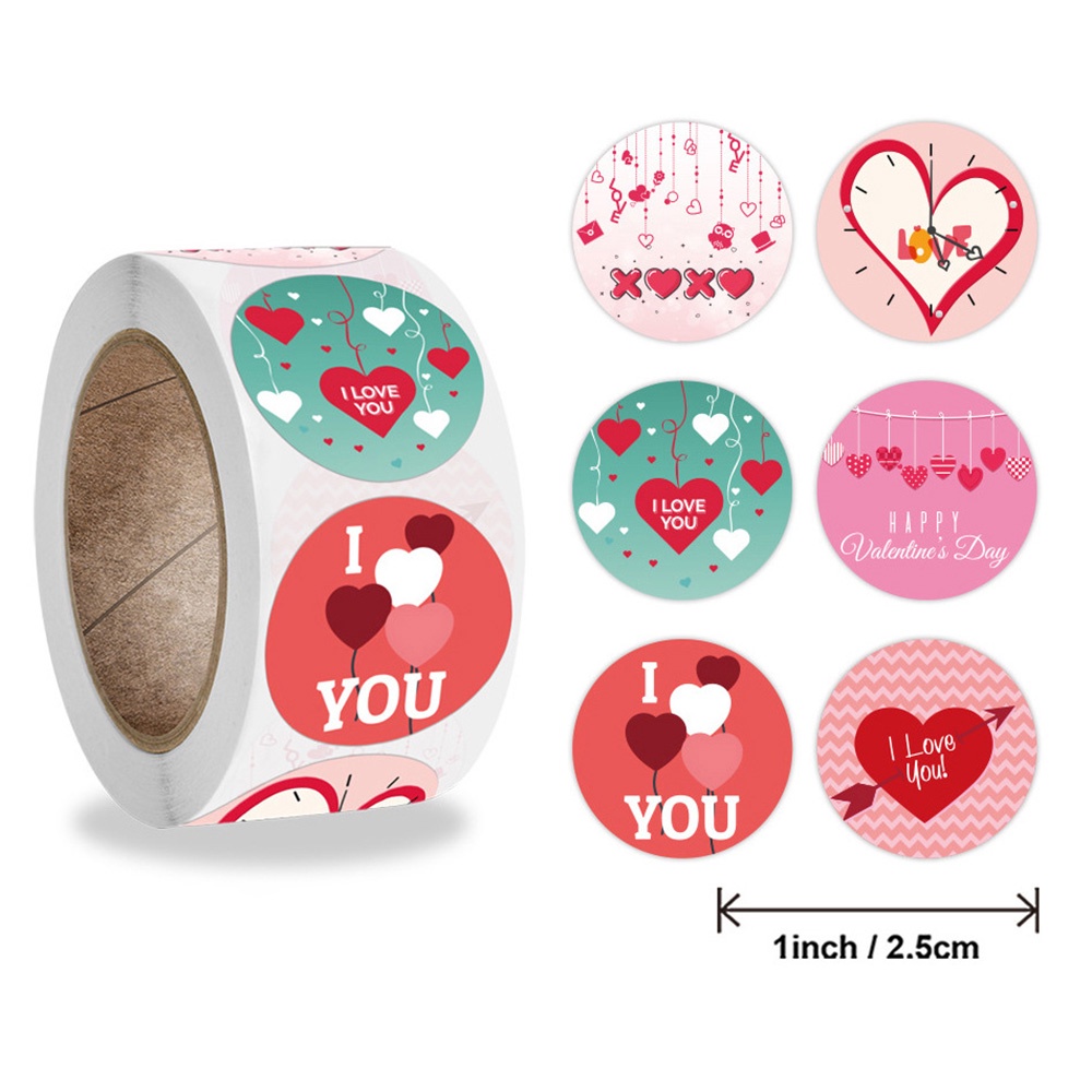 Detail 500pcs Stiker Bulat Bentuk Hati Rolled Stickers Tape Untuk Label Paket Hadiah Hari Valentine