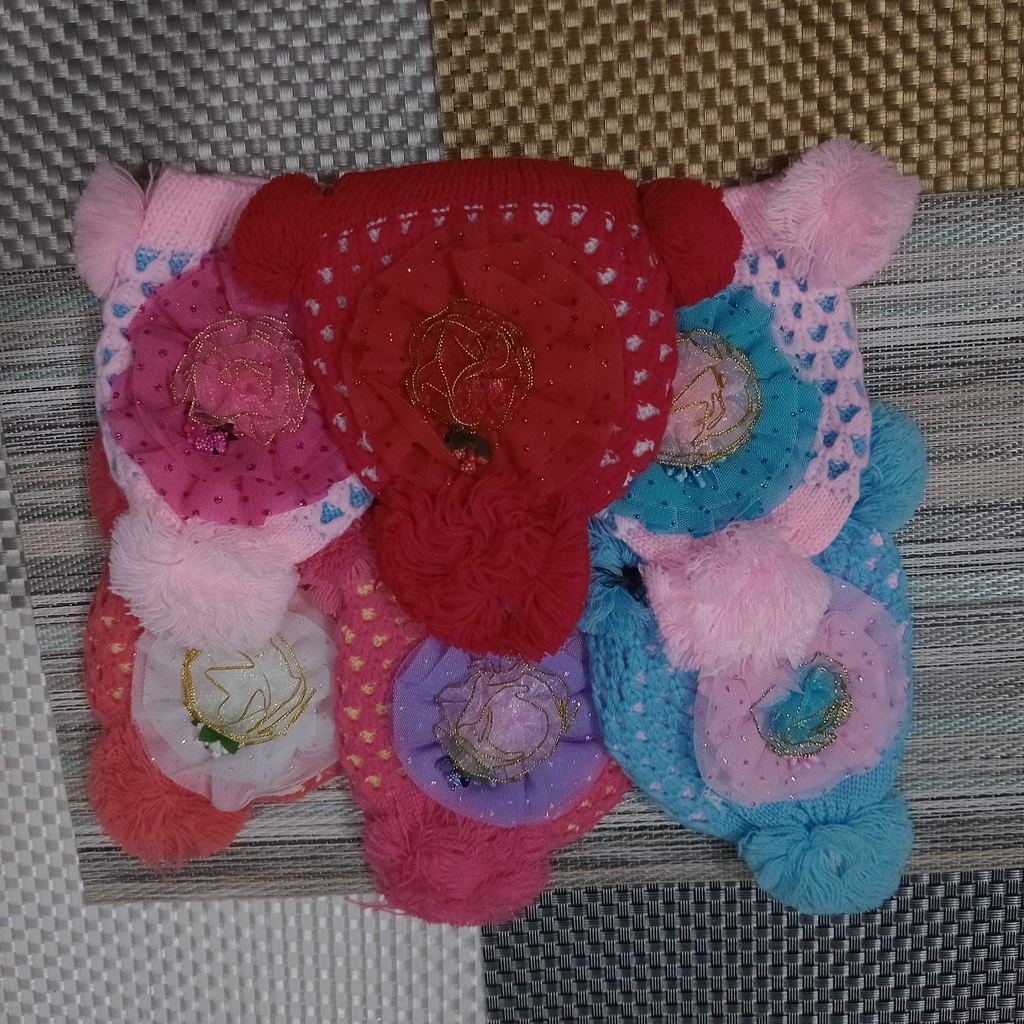 Detail 5044 / Topi Rajut pom pom bunga / Topi Kupluk Bany