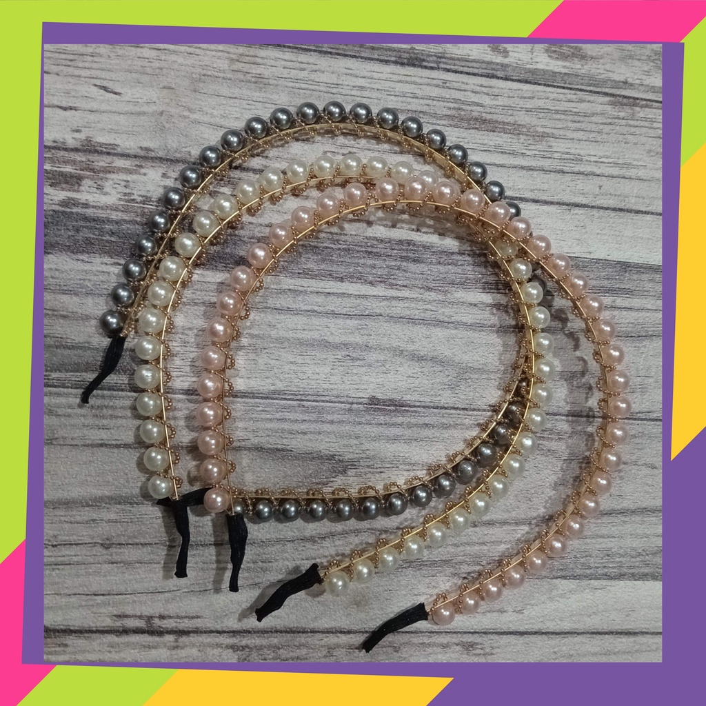 5099 / Paket usaha bando rambut mutiara warna & rantai / Korean hair band hrad pear cantik [ isi 6pcs & 3pcs ]