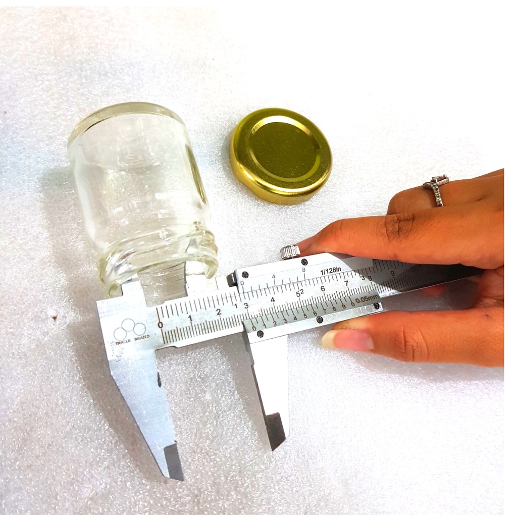 Botol kaca 50ml kapasitas 50ml Tinggi botol dengan tutup 5.6 cm DIAMETER BOTOL 4.1 CM diameter mulut dalam 2.7cm diameter mulut luar 3.6 cm berat 74 gram 1 karton isi 162 pcs