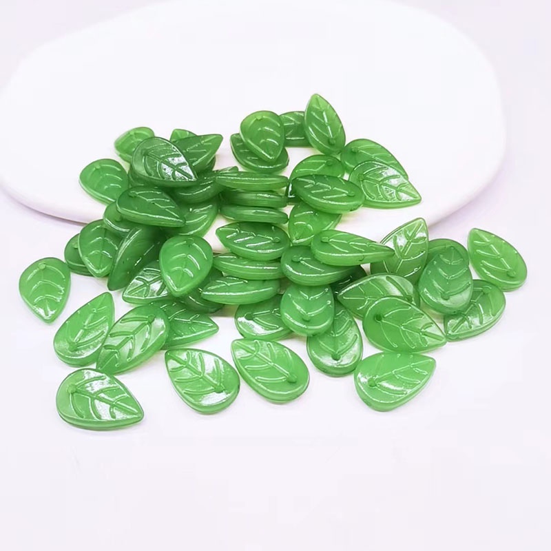 Detail 50pcs Manik-Manik Bentuk Daun Hijau Bahan Akrilik Untuk Membuat Perhiasan
