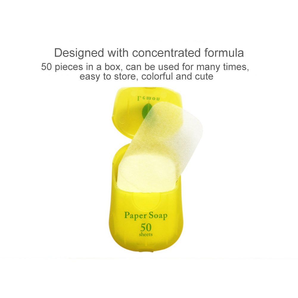 ღ 50Pcs Portable Sabun Kertas Cuci Tangan Kotak Sabun Kertas Portable Perjalanan Cuci Tangan Mini Sabun Kertas
