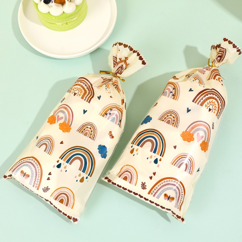 Detail 50pcs/set Kantong Plastik Motif Pelangi Bohemia Dengan Dasi/Kantong Kemasan Permen Kue Pesta Ulang Tahun Anak Putri