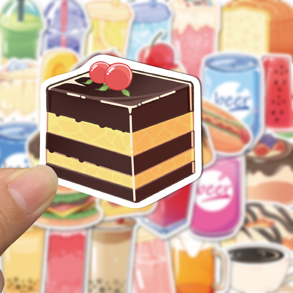 Detail 50pcs Stiker Lucu Kartun Makanan Dan Minuman Water cup Helm Dekorasi Tahan Air Stiker