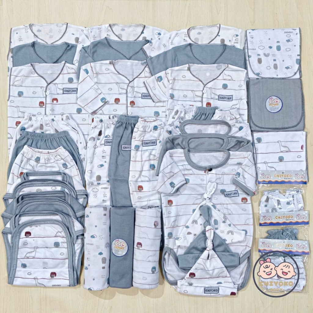 51 Pcs Paket Hemat Terkomplit Baju Bayi Baru Lahir Paket Hemat Brojol Baby Paket Komplit Bayi Baru Lahir Serian ABU Chiyoko Baby