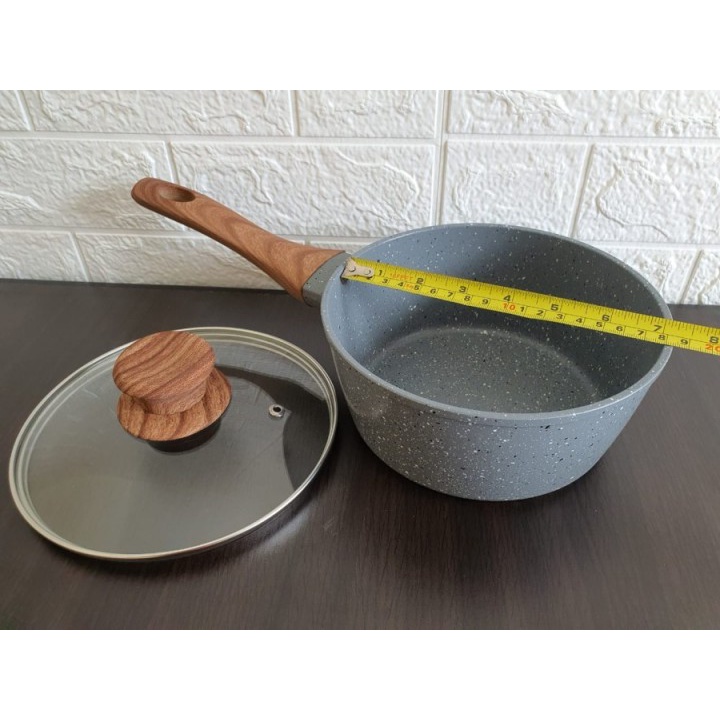HONEY KITCHEN SAUCE PAN MARBLE 18 CM WITH LID DENGAN TUTUP KACA