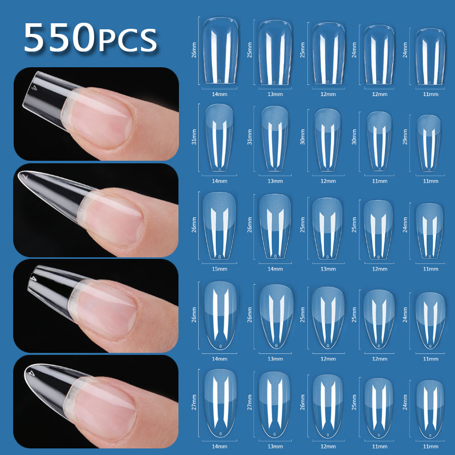 Detail 550pcs/box Tekan Pada Kuku Tips Kuku Peti Mati Bening Penutup Penuh Kuku Palsu Buatan UV Gel Nails Fake Tips Capsule Extension Manicure Tool