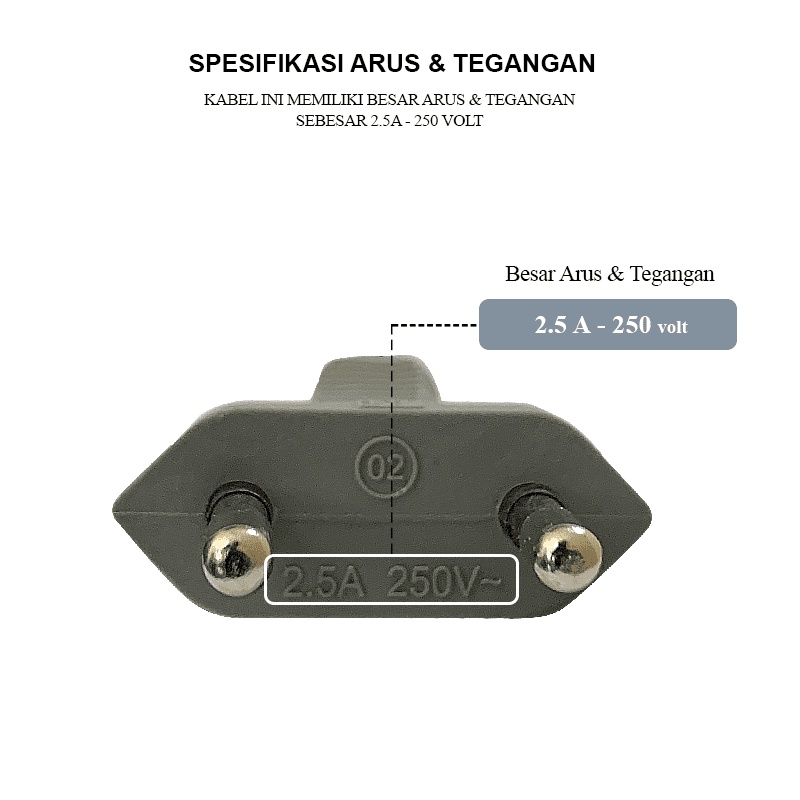 PANJANG KABEL : 5 Meter Ampere : 2,5A Tegangan : 250 Volt Bahan: 100% kawat tembaga Warna: Abu-abu, Hitam, dan Putih KABEL SAMBUNG LANGSUNG LISTRIK COCOK UNTUK: OVEN, MIXER, KIPAS ANGIN, LAMPU, CATOK, DLL...