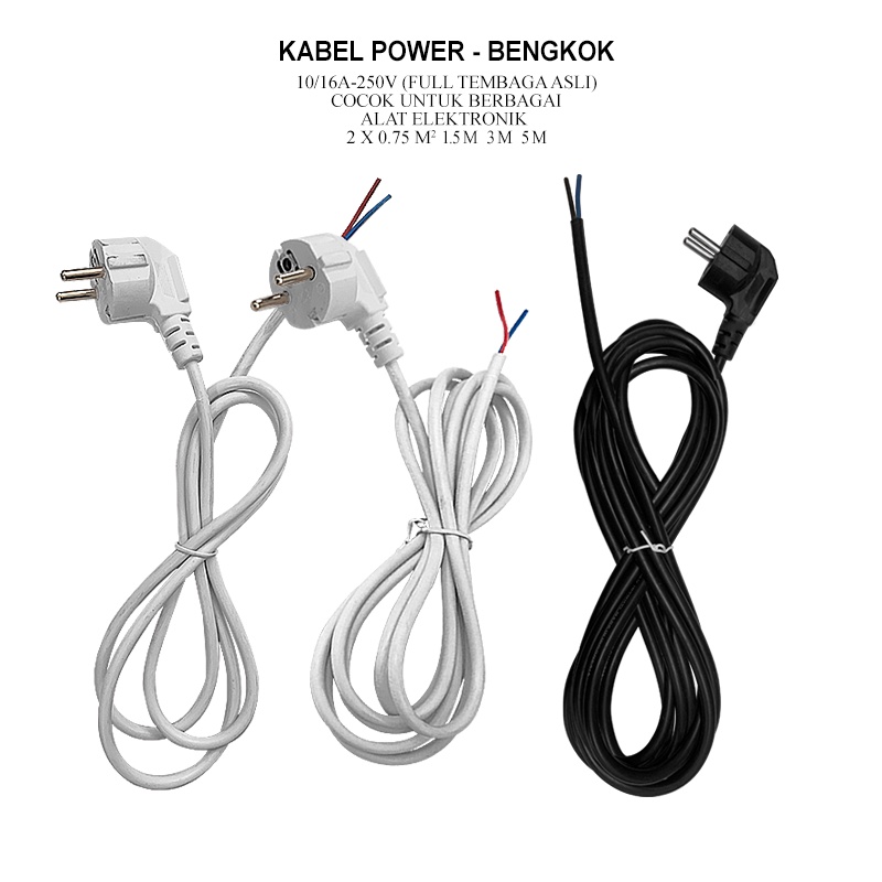 5M ASLI TEMBAGA KABEL POWER BENGKOK STEKER COLOKAN 2 KABEL SNI TERSEDIA 3 UKURAN 1,5M 3M DAN 5M PUTIH DAN HITAM