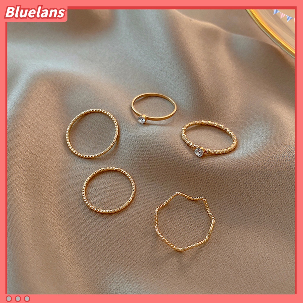 Detail 5pcs / 3 Pcs Cincin Jari Model Glossy Tahan Lama Stackable Untuk Wanita