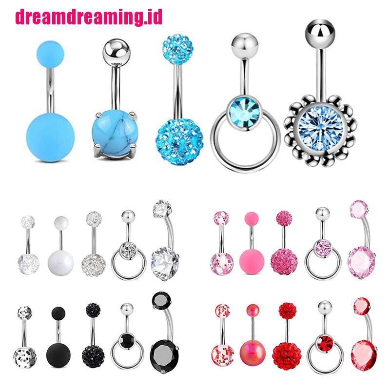 Detail 5pcs Anting Tindik Perut / Pusar Barbel Dengan Kristal Berkilau Untuk Wanita