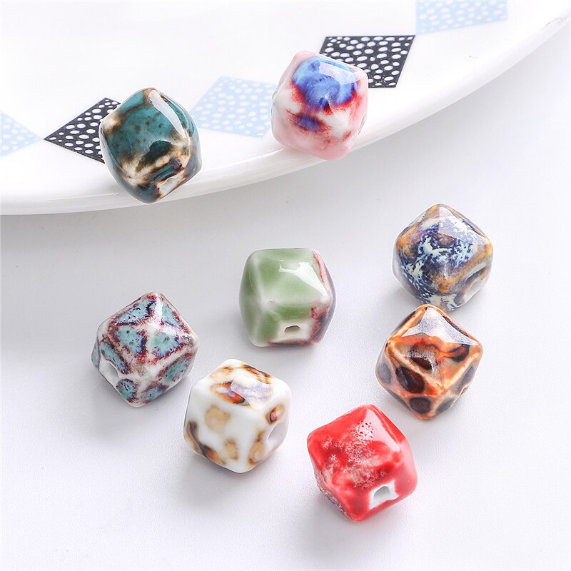 Detail 5pcs Manik-Manik Kubus Keramik Porselen 13mm Gaya China Untuk Membuat Perhiasan Gelang
