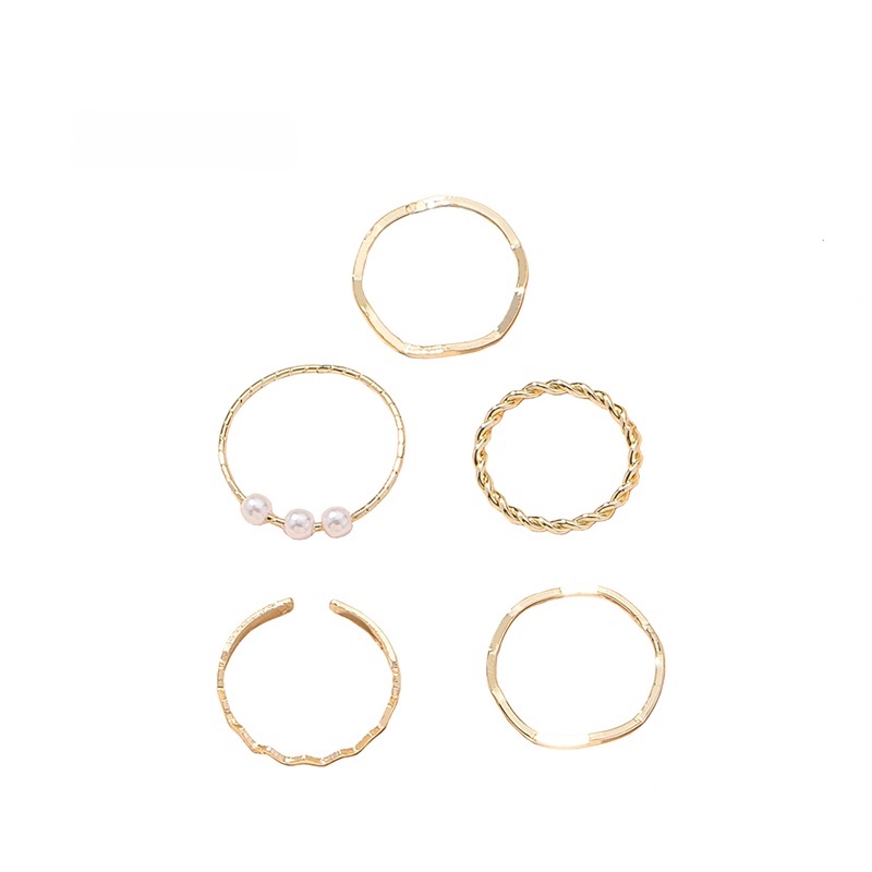 Aksesoris Fashion > Cincin > 5pcs/set Cincin Jas Penyepuhan Mosaik Buatan Mutiara Glitter Gaya Korea Kesederhanaan Bentuk Bergelombang Desain Rasa Temperamen