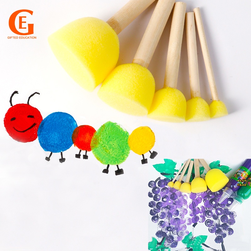 Detail 5pcs / Set Kuas Spons Gagang Kayu Untuk Melukis / Menggambar / Graffiti DIY
