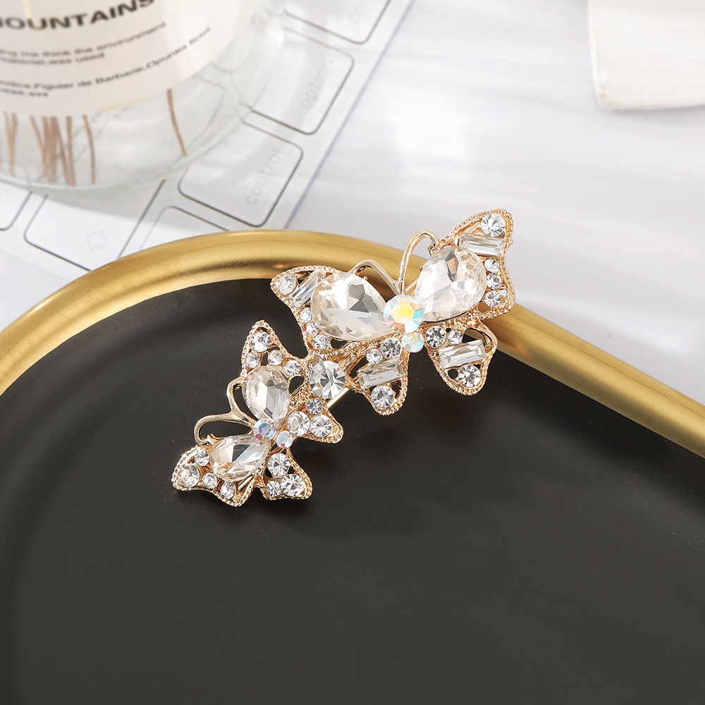 Detail 6.5 cm Berlian Imitasi Kupu-Kupu Jepit Rambut Retro Penuh Berlian Bang Rambut Klip Wanita Aksesoris Rambut