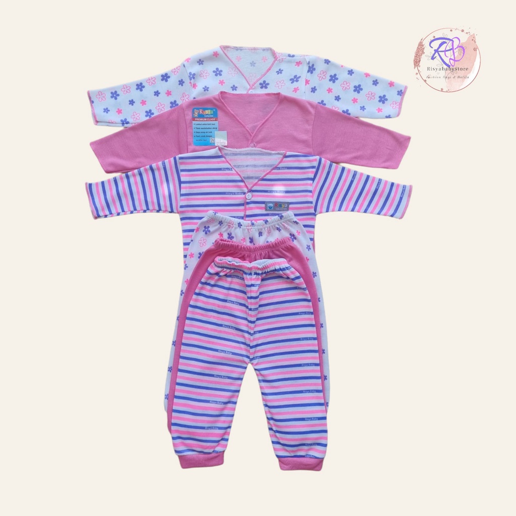 Detail 6 pcs / 3 setelan baju bayi lengan panjang SNI variasi lengkap / 3 stel baju bayi newborn / 3 pcs celana panjang bayi /3 baju bayi lengan panjang