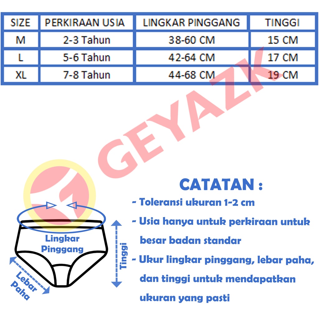 Detail Ukuran M Lingkar Pinggang = 32 Melar Sampai 60cm Tinggi Celana = 19cm L Lingkar Pinggang = 34cm Melar Sampai 62cm Tinggi Celana = 21cm XL Lingkar Pinggang = 42cm Melar Sampai 80cm Tinggi Celana = 22cm