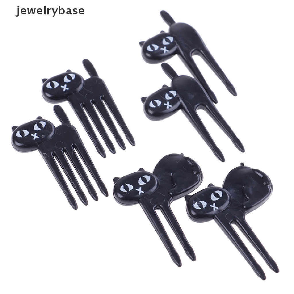 Detail 6 Pcs Garpu Buah Desain Kucing Hitam Untuk Dekorasi dessert