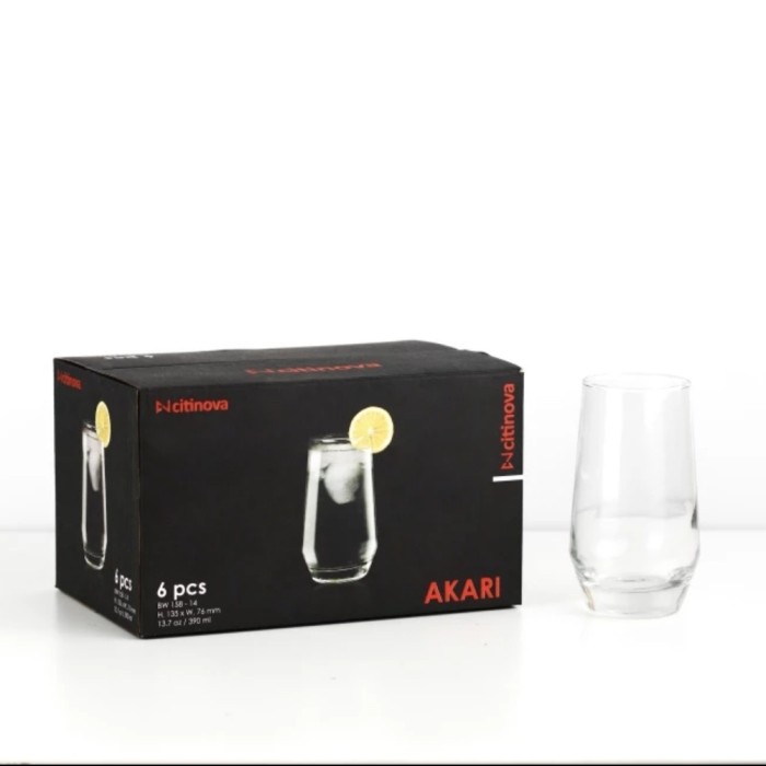 Gelas merek Citinova tipe Akari memiliki design yang menarik dan praktis, Cocok untuk berbagai jenis minuman di restoran, cafe, hotel dan rumah tangga.