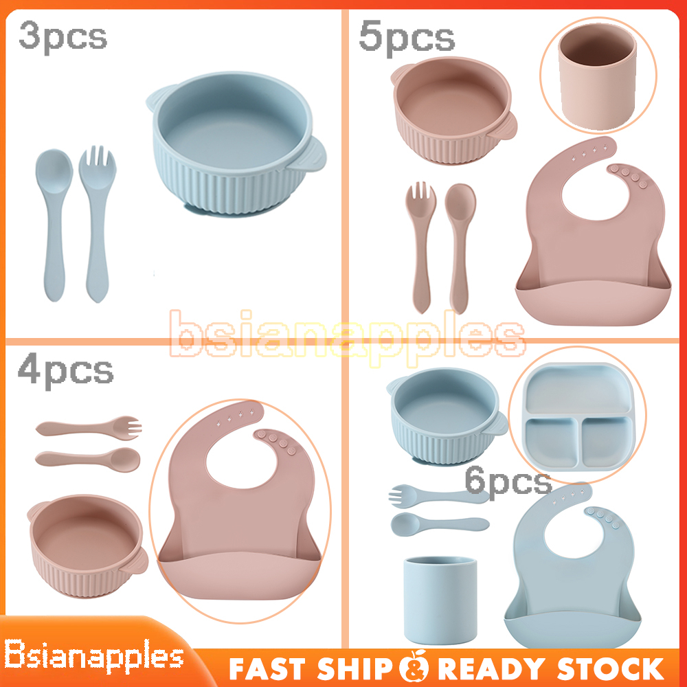 Detail 6 pcs Perlengkapan makan bayi Aksesori makanan Set perlengkapan makan silikon Mangkuk