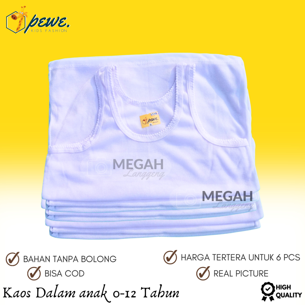 Fashion Bayi & Anak > Pakaian Anak Perempuan > Pakaian Dalam > 6 Pcs Singlet bayi laki laki - Kaos Dalam anak laki laki umur 0-12 tahun - Kaos dalam anak bayi lusinan - Kaos dalam bayi laki laki - Kaos dalam bayi perempuan - Daleman anak perempuan - Singlet anak perempuan lusinan - Daleman anak cewek- Megah Langgeng