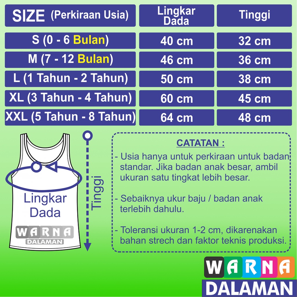 - S UNTUK USIA 0 - 6 BULAN - M UNTUK USIA 7 - 12 BULAN - L UNTUK USIA 1 - 2 TAHUN - XL UNTUK USIA 3- 4 TAHUN - XXL(3L) UNTUK USIA 5 - 8 TAHUN