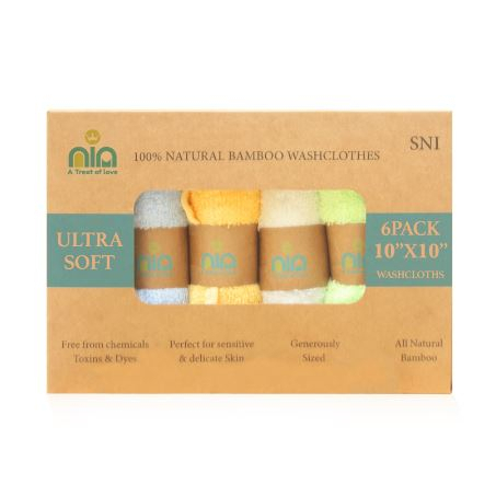 Ibu & Bayi > Perlengkapan Mandi > Jas Mandi, Handuk, & Lap Mandi > 6 Pcs Washcloth Bambo Towel NIA - Saputangan Bayi Lembut