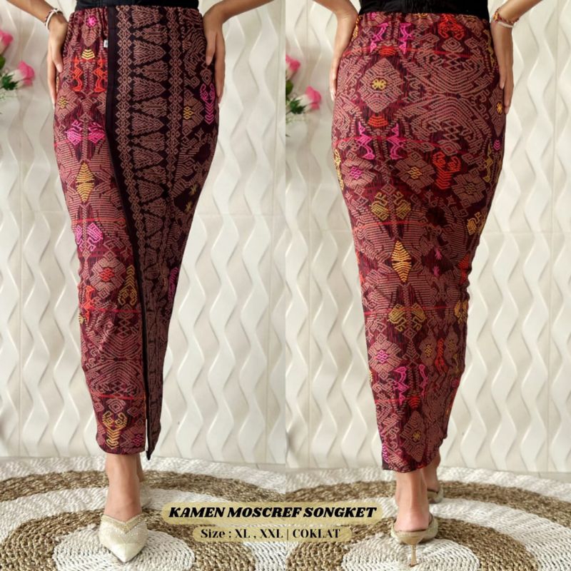 Kain kamen yang sudah dijahit jadi seperti rok. Lebih praktis, hemat waktu dan biaya. Tinggal dipakai seperti memakai rok. Bagian pinggang full karet. Ada belahan di bagian depan setinggi lutut jadi memudahkan pada saat berjalan. Bahan lembut, ringan tapi tidak nerawang sehingga nyaman dipakai.