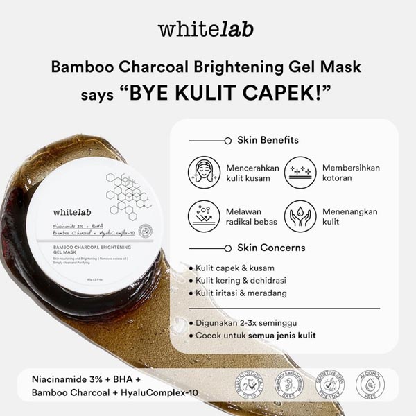 Whitelab Bamboo Charcoal Brightening Mask diformulasikan dengan kombinasi bahan pilihan yang sinergis, dapat merawat dan membuat kulit terlihat lebih sehat, glowing dan cerah.