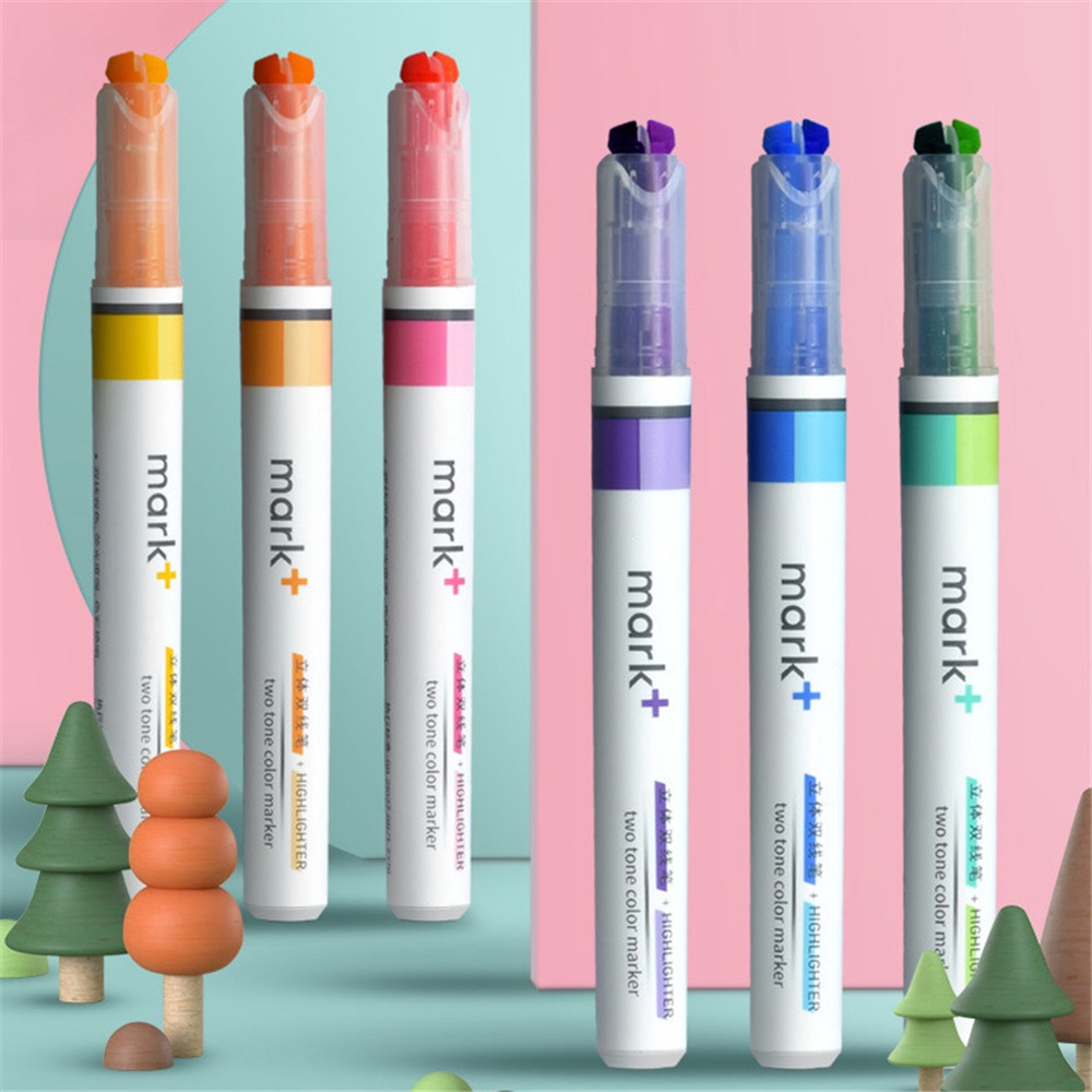 Detail 6pc /box Siswa Sekolah Warna-Warni Garis Ganda fluorescent Tangan Akun pen Stabilo Spidol