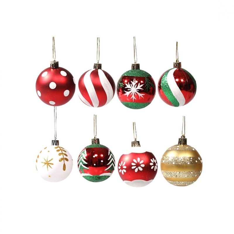 ★★★Deskripsi Produk★★★: Ideal untuk dekorasi gantung pohon Natal rumah untuk menciptakan suasana meriah Ada 8 gaya bola dekoratif Sempurna untuk dekorasi pesta liburan Natal atau hadiah Natal untuk teman Spesifikasi Kategori: Bola Dekorasi Natal Bahan: PVC Gaya: spiral putih merah, pohon Natal, kepingan salju hijau merah, kepingan salju putih merah, spiral putih hijau merah, pola horizontal emas, titik putih merah, cabang emas putih Ukuran bola: diameter 6cm Ukuran kotak tunggal: 17*12*6 cm Adegan yang berlaku: cocok untuk dekorasi dan gantung pohon Natal Jumlah: 6 pcs/kotak Paket termasuk. 1 * kotak 6 bola dekoratif