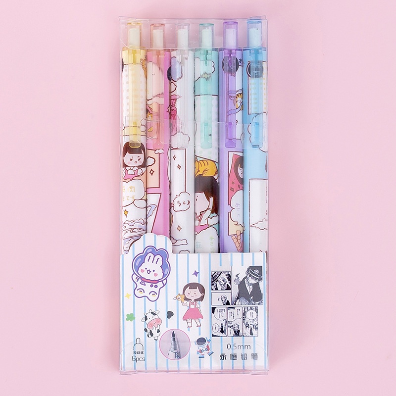 Detail 6PCS PENSIL 2ML MEKANIK KARAKTER LUCU 0.5MM - PENCIL MEKANIK -JT0009
