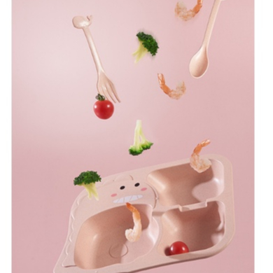 Detail 6pcs Set Alat Makan Anak Desain Kartun DINO Bahan Serat Gandum BPA FREE