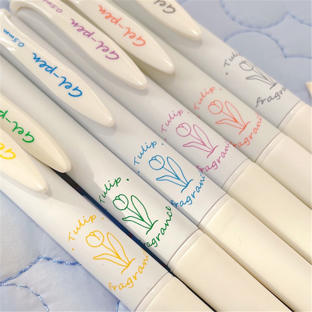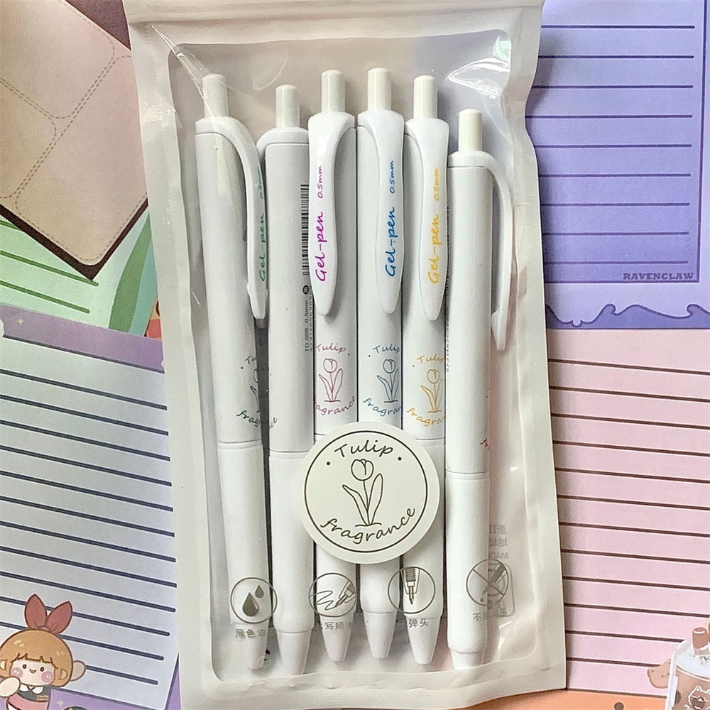 Detail 6pcs set Pen Printing Tulip Bahan Halus 0.5mm Pulpen Hitam Untuk Alat Tulis Siswa