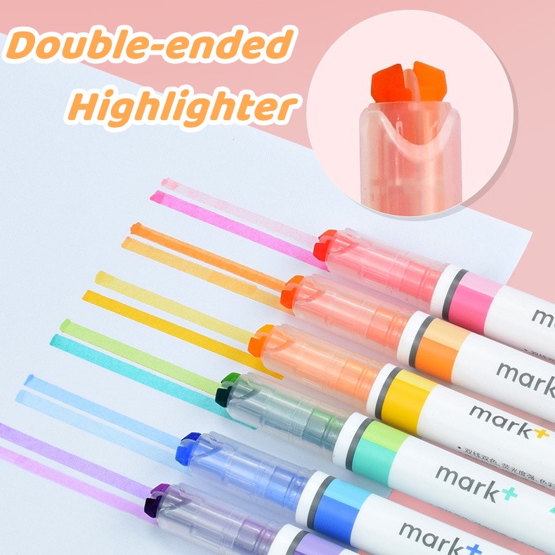Detail 6pcs / Set Spidol Highlighter Warna Glossy Untuk Stationery Pelajar / Kantor
