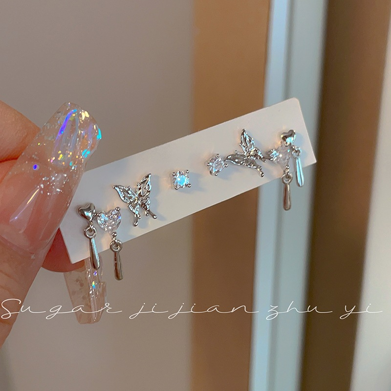Detail 6pcs /Set Y2K Musim Panas Kupu-Kupu Cinta Stud Earrings Twinkle Niche Anting Sederhana