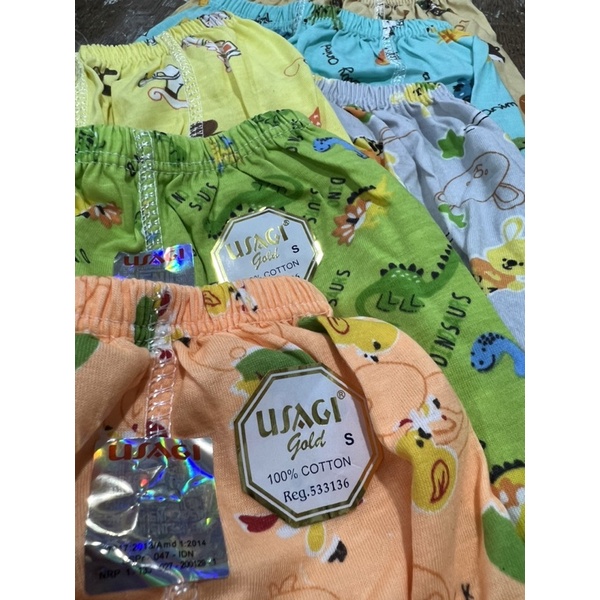 Celana Panjang Bayi Full Print Merk Usagi Gold (SNI) Bahan 100% cotton Kain lebin tebal dari Usagi Bintik/Petak Bagian belakang tampung pampers Lembut & nyaman dipakai Ukuran yang tersedia: S, M, L, XL, XXL
