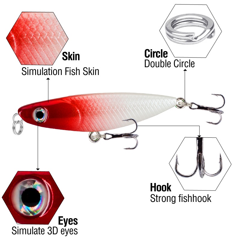 3.Simulasi Kulit Ikan (Laser): Desain kulit ikan simulasi membuatnya lebih menarik bagi ikan besar.