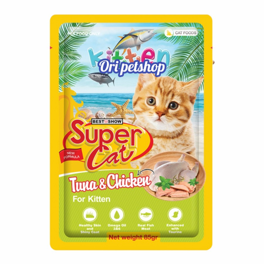 (6x) SUPERCAT Pouch Kitten Tuna Chicken Makanan Basah Sachet 85gr(6x) SUPERCAT Pouch Kitten Tuna Chicken Makanan Basah Sachet 85gr