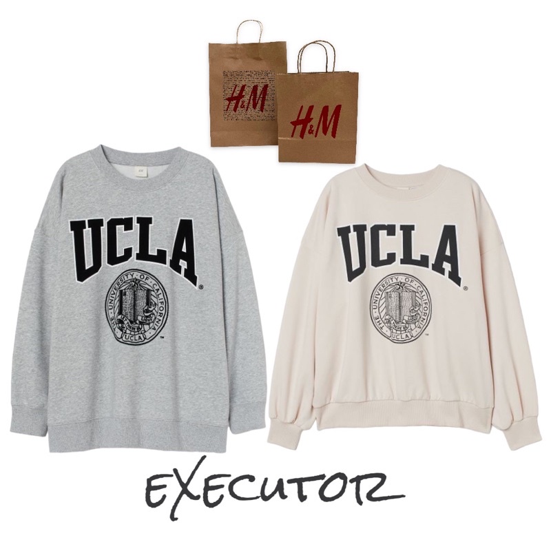 ( 8.8 ) Crewneck Sweatshirt H&M Unisex Sablon Ucla,  Flecee Katun Lembut Tebal, Free Papperbag