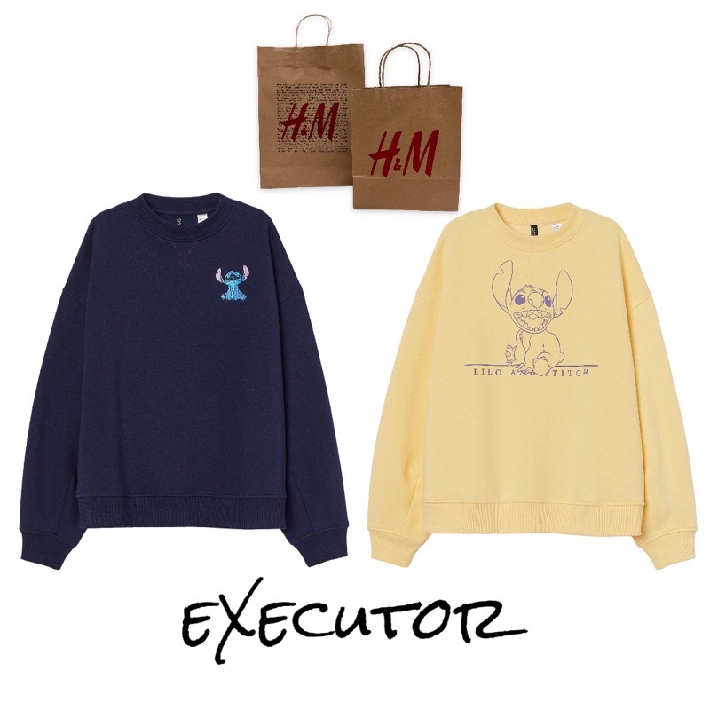 Detail ( 8.8 ) Crewneck Sweatshirt H&M Unisex Sablon Stitch Lilo Stitch, Flecee Katun Lembut Tebal, Free Papperbag