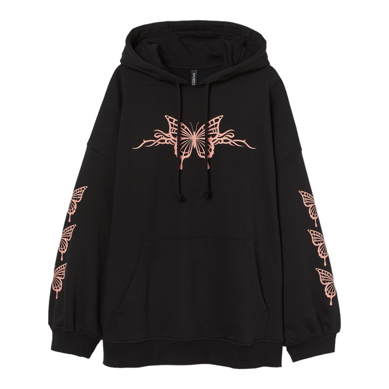 Pakaian Wanita > Hoodie & Sweatshirt > Hoodie > ( 7.7 ) Hoodie H&M Wanita Butterfly, Flecee Katun Lembut Tebal, Free Papperbag