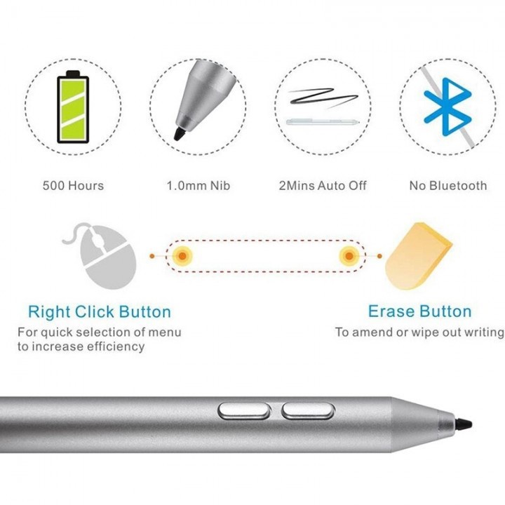The surface pen supports 600 hours of continuous use and 240 days of support. When you stop moving this stylus, it will automatically turn off. This surface pen has 1024 pressure points for easy note taking, drawing, design and writing.
